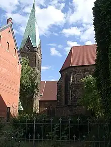 - (de) Cet article est partiellement ou en totalité issu de l’article de Wikipédia en allemand intitulé « Kloster St. Mauritius (Minden) » (voir la liste des auteurs).
