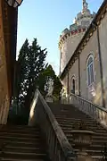 Sur la route d'accès à l'abbaye s'étend un chemin de croix constitué par des tourelles.