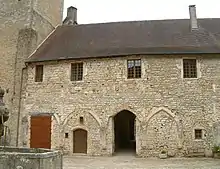 La première cour est entourée de bâtiments, dont les façades datent du XVIe siècle, exception faite de l'église (XVe siècle) et du donjon (XIIIe siècle).