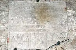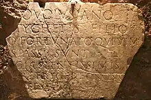 Le dépôt lapidaire qui occupe l'ancienne sacristie de la crypte de Saint-Victor contient une plaque de marbre retrouvée en 1839[s 1] sur laquelle figure une inscription célèbre, incomplète sur ses deux bords. Celle-ci fait l’objet d'une controverse depuis de nombreuses années, car elle peut, selon l'interprétation, démontrer l'ancienneté du martyrologe marseillais.
