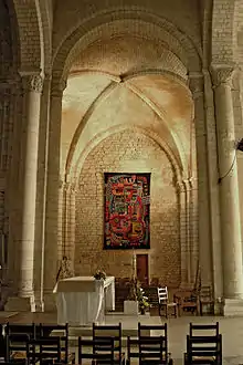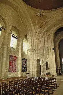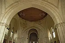 Ainsi, la nef est réaménagée de façon à ne plus former qu'un unique vaisseau. Les murs gouttereaux sont renforcés par de puissants piliers permettant de remplacer la charpente initiale par deux coupoles sur pendentifs, sur le modèle de celles qui s'élèvent simultanément à l'abbaye de Sablonceaux ou encore à la cathédrale d'Angoulême.