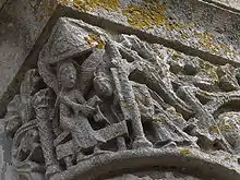 Le clocher comporte un abondant décor sculpté, illustratif de l'art roman saintongeais. Les chapiteaux sont ornés de motifs végétaux ou géométriques, de scènes religieuses, d'animaux fabuleux tels le phénix, symbole de résurrection.