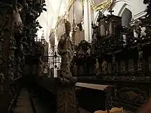 Dans l’église, il y a aussi des stalles baroques, chef-d’œuvre de la sculpture sur bois en Silésie. Le fond des stalles en bois de chêne qui a été construit dans le style renaissance, vient de 1567. Sur les stalles, il y a des riches ornements sous une forme d’acanthe et de coquilles. Les dossiers sont ornés de 36 bas-reliefs qui présentent les scènes de la vie du Christ. Ils ont été faits de bois de tilleul. Après 1700, on a ajouté les loges d’abbé et de prieur, et de plus, on a installé les figures de Saint Grégoire le Grand, d’Eugène III, de Saint Jérôme, de Konrad de Poitiers, de Saint Benoît et de Saint Bernard.