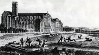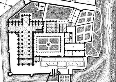 En 1682, l'abbé Claude Petit poursuit cette œuvre en édifiant le logis abbatial et le cloître, tandis que les fortifications sont détruites et les fossés comblés.