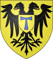 L'empereur Maximilien concède à l'abbaye l'aigle impérial par lettres patentes du . L'ordre de Saint-Antoine devait porter pour armes : « un escusson en champ d'or à l'aigle éployée de sable, accolée d'une couronne et d'un collier d'or, chargée sur l'estomach d'un escusson pendant en champ d'or à la lettre T d'azur. L'escu timbré d'un haume d'or, ayant pour cimier une couronne de mesme du milieu de laquelle sort un aigle éployé de sable et diademé d'or »[20].