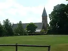 L'abbatiale présente la particularité d'être une église à deux nefs jumelles séparées par une grille de fer forgé, celle du sud étant réservée aux sœurs et l'autre aux fidèles de la paroisse[9]. Elle est l'œuvre de Charles Francis Hansom (en). Les deux chœurs sont profonds de deux travées et chaque nef de cinq. Le clocher est situé sur la façade occidentale de la nef des sœurs, qui ne s'ouvre que par de petites fenêtres. Au contraire, la nef des laïcs s'ouvre à l'ouest par une vaste verrière à trois lancettes. Outre le portail ouest donnant dans cette dernière nef, un portail nord peu usité permet aussi un accès dans l'église depuis l'extérieur[2].