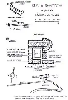 En 1213, l’abbée Arnaud-Garcie eut la joie de voir terminé le monastère de Nizors que les religieux avaient mis trente trois ans à construire (1180-1213). La dédicace solennelle de l’église et de l’abbaye eut lieu exactement le V des Ides de Juin.