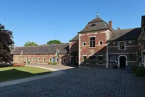 Il existe une vaste ferme en carré, assise sur le versant méridional d'une colline en pente douce, baignée en son pied par la Gette. L'ensemble, d'une remarquable homogénéité, est bâti de briques sous toiture d'ardoises, avec de nombreux éléments de pierre (chaînages d'angle, embrasures, etc.) dite de Gobertange.