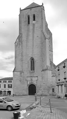 Sa façade imposante se compose d’un haut clocher-porche et, plus bas, d’un étonnant portail roman à six voussures polylobées, vestiges de la première construction. Autres témoins du premier édifice, les chapiteaux sculptés sur la façade nord et décorés de motifs végétaux, animaux ou humains.
