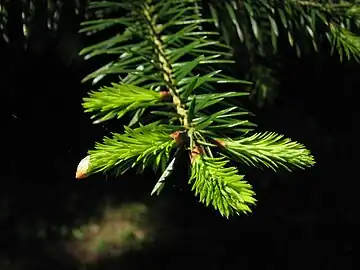 Enfin, signalons aussi qu’il est possible d’extraire des huiles essentielles des feuilles de ce sapin[16].