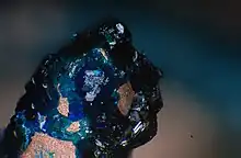 Ces deux corps chimiques mis en solutions aqueuses concentrées apportent une couleur vert-bleu[2].