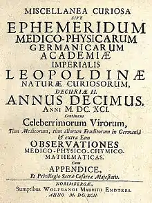 Le , l’Academia Naturae Curiosorum (Académie des Curieux de la Nature) est créée par quatre médecins : Johann Laurentius Bausch (1605-1665), qui en est l’instigateur et son premier président, Johann Michael Fehr, Georg Balthasar Metzger et Georg Balthasar Wohlfarth. En 1670, la société commence à faire paraître Ephemeriden, l’un des premiers journaux scientifiques. En 1677, l’empereur Léopold Ier reconnaît la société qui prend, dix ans plus tard, le nom de Leopoldina[3].