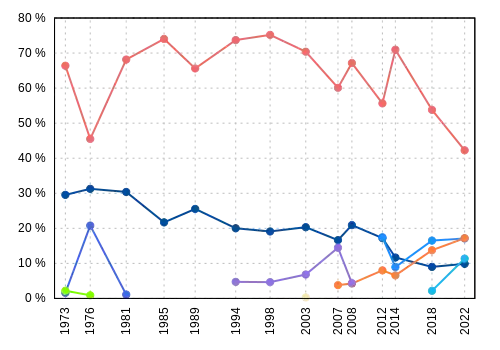 | Référendum de 1980 | 26,42 % | 73,58 % | 88,56 % | |