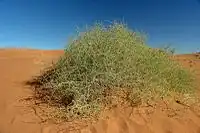 La plante se présente sous forme d'un buisson arbustif, vivace, de 0,5 à 1 m de haut, dense et larges, poussant en général sur de petites dunes que la plante a contribué à construire elle-même[2]. Lorsque des vents forts la recouvrent de sable, la plante arrive à émerger par-dessus la petite dune qui s’est formée et ainsi a accumuler du sable à son pied.