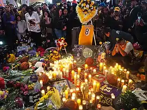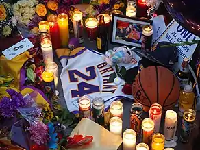 Près de 200 personnes se sont rassemblées au pied de la colline près de l'accident, dont beaucoup portaient le maillot de Kobe Bryant et tenaient des ballons de basket. Les gens ont également formé un mémorial impromptu au Staples Center, où les Lakers de Los Angeles, l'équipe avec laquelle Kobe Bryant avait passé toute sa carrière professionnelle, jouent, quelques heures seulement avant que l'arène ne soit prévue pour accueillir les Grammy Awards[39]. Au cours de la cérémonie, l'hôte Alicia Keys et Boyz II Men ont interprété la chanson It's so Hard to Say Goodbye to Yesterday en hommage à Kobe Bryant, et d'autres artistes, dont Lil Nas X, Lizzo, Run-DMC, Aerosmith et DJ Khaled, ont rendu hommage à Kobe Bryant dans leurs performances[40]. Les deux maillots retirés de Bryant suspendus dans les chevrons du Staples Center ont été éclairés par un projecteur[41].