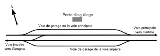 À Quintinshill, est installé un poste d'aiguillage sur la ligne ferroviaire de la compagnie du Caledonian Railway reliant Glasgow à Carlisle, sur l'actuelle West Coast Main Line. En cet endroit, deux voies de garage se situent de part et d'autre des deux voies principales de la ligne. Ces deux voies de garage sont destinées au stationnement temporaire de trains afin de laisser passer des trains plus rapides empruntant les deux voies principales.