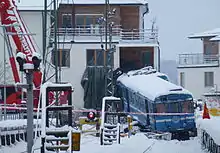 Le , un train de banlieue du Saltsjöbanan (en) percute un immeuble résidentiel dans la banlieue de Saltsjöbaden de Stockholm, blessant grièvement une personne[6],[7]. Traversant deux gares à 80 km/h[8], le train déraille et finit sa course dans la cuisine située au rez-de-chaussée de la maison[9]. Une femme de ménage de 22 ans[10], présente à bord, est extraite du train et hospitalisée dans un état est décrit comme « grave mais stable[11]. » Aucune des cinq personnes qui se trouvaient à l'intérieur de l’habitation au moment de l'accident n'est blessée[12].