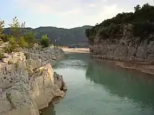 Le pont Episkopi franchissant l'Achéloos sur le lac Kremastá. | |