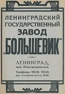 Le soviet de Petrograd décide le de renommer l'usine en usine « Bolchevik » d'État de Petrograd. C'est elle qui produit les premiers tracteurs et tanks d'URSS.