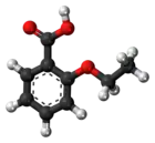 ![]() ![]() Formule topologique et représentation boules-bâtonnets de l'acide 2-éthoxybenzoïque |
