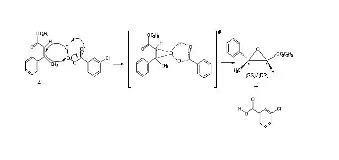 - L’époxyde formé est le résultat d’une addition syn sur l’alcène. Cette addition est stéréospécifique : l’alcène syn donne l’époxyde syn et inversement pour l’alcène trans.