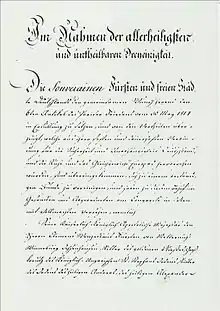 Le traité de Paris () prévoyait que les États allemands conserveraient leur indépendance mais seraient unis par un lien fédératif[1].