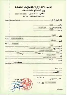 - L'acte de naissance intégral[2]: il s'agit du document le plus complet contenant toutes les informations relatives à la naissance telles que le nom, le prénom, la date et le lieu de naissance, le sexe, le nom des parents, la profession des parents, etc.