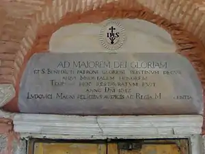 - l'Église des Jésuites d'Innsbruck où une plaque gravée, apposée tout à fait en haut de la façade, au milieu entre les deux tours, indique A.M.D.G avec en dessous MCMI pour 1901 qui est l'année où les deux tours ont été rajoutées à cet édifice du XVIIe siècle