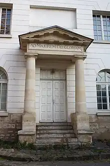- le fronton du portique de la porte d'entrée centrale de la chapelle du couvent des Récollets de Paris.