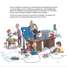 Autorisé par la licence libre, on trouve également, sur la forge du projet, une version numérique du livre avec uniquement les illustrations, pour servir notamment de support à des lectures publiques dans les écoles ou les bibliothèques[13]. Certaines de ces illustrations sont par ailleurs aussi proposées sans couleur pour inviter les enfants à faire du coloriage[14].