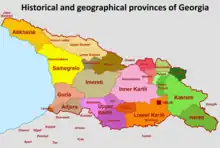 - Kakhétie : Akhméta, Dédoplistskaro, Gourdjaani, Kvaréli, Lagodékhi, Sagarédjo, Sighnaghi et Télavi,