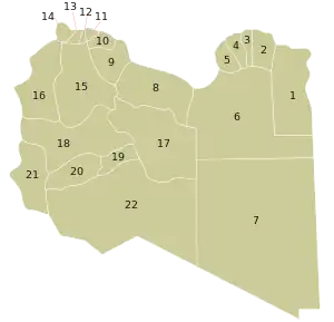 Depuis 2007, la Libye est divisée en 22 chabiyat.