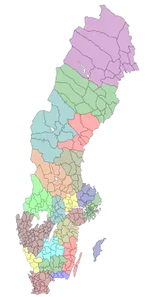 Découpage religieux à l'origine, les frontières des paroisses (församlingar) correspondaient, jusqu'aux années 1950 au découpage de la Suède en communes (sauf dans les villes). Depuis les grandes fusions des communes des années 1950, 71 et 74, les paroisses ne jouent plus de rôle dans l'administration du pays. Mais comme pour les provinces, les Suédois y sont également attachés, à un niveau plus local (c'est au moins le cas à la campagne où ce découpage correspond aux vieilles communes). Aujourd'hui, les paroisses correspondent à une subdivision qui pourrait se trouver entre la commune et la municipalité. Il existe 2512 paroisses. La paroisse reste également une unité utilisée au sein de l'Église de Suède, définitivement séparée de l'État depuis 2000.