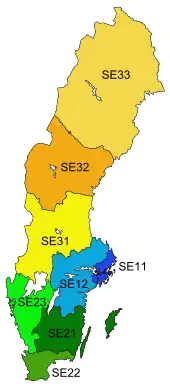 Le niveau 3 correspond aux comtés suédois, alors que les deux autres niveaux sont propres à Eurostat. Ils suivent le découpage suivant[5] :