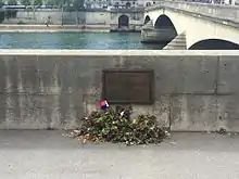 En 2003, le maire de Paris Bertrand Delanoë, au nom des citoyens parisiens, honore sa mémoire et celle de toutes les victimes du racisme par la pose d'une plaque commémorative[4] sur le quai rive droite, en amont du pont.