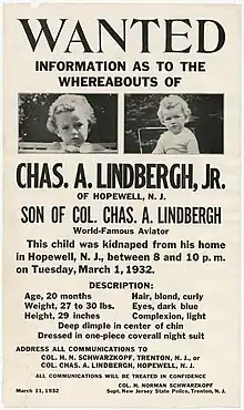L'enlèvement de Charles Augustus Lindbergh Jr., fils de l'aviateur Charles Lindbergh et d'Anne Morrow Lindbergh, est l'un des crimes les plus médiatisés du XXe siècle. Le nourrisson de 20 mois est enlevé de la maison de ses parents à East Amwell dans le New Jersey, située à côté de la ville d'Hopewell, le soir du . Plus de deux mois après, le , son corps est retrouvé à peu de distance du domicile des Lindbergh. Un examen médical détermine que la cause de la mort était une importante fracture du crâne.
