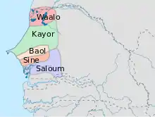 | Empire Djolof | XIIe siècle | 1549 | actuels Sénégal et Gambie |