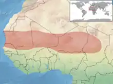 Cette espèce se rencontre en Mauritanie, au Sénégal, au Mali, au Burkina Faso et au Niger[1].