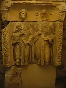 - la stèle des « Deux époux âgés » qui sont vêtus de toges et devaient donc être citoyens romains. Cette stèle funéraire du IIIe siècle a probablement été réalisée par les soins de leur fils Atilius Pompeianus.