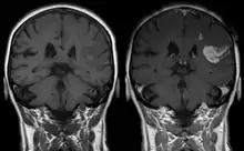 Les chélates de Gd3+ sont hydrophiles et franchissent seulement une barrière hémato-encéphalique compromise, telle que les lésions et les tumeurs.