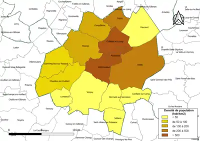 | Chevillon-sur-Huillard | 45092 | Chevillonnois | 19,34 | 1 494 (2021) | 77 |