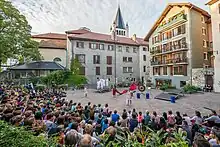 Les spectateurs sont accueillis en participation libre dans différents lieux de l'agglomération d'Annecy, parfois inattendus, qui se transforment alors en décor de théâtre. De la cour du Château en passant par la vieille ville, jusqu'en périphérie avec des quartiers populaires[6]. « Pendant sept jours, le théâtre est dans la rue. Il se glisse même chez l'habitant[7]. »