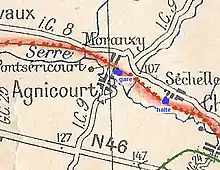 De 1907 à 1959, Agnicourt a été traversée par la ligne de chemin de fer de Marle à Montcormet qui passait au nord du village sur la rive droite de la Serre.
