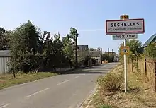 Séchelles, ancien hameau de la commune, est attesté sous les formes Cheselle (1145) ; Sancta-Maria-de-Chassella (1150) ; Chasella (1265) ; Chécelles (1389) ; Chesselles (1394) ; Chesselle (1394) ; Cecelles (1475) ; Cexelle (1495) ; Cechelle (1515) ; Ceschelles (1710)[15].