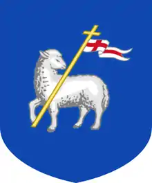Armes des Agnusdio : d'azur, à l'agneau pascal d'argent, passant et regardant, tenant une croix latine de gueules.