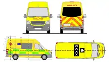 Ces caractéristiques extérieures des véhicules qui interviennent dans le cadre de l’aide médicale urgente sont définies de manière précise par l’arrêté ministériel du (Moniteur belge du ): codes RAL, position de la bande rouge, matériaux pour le marquage…