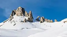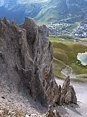 L'aiguille Percée vue depuis les hauteurs de Tignes au sud. | |||