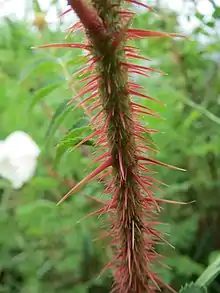 Ce que l'on appelle vulgairement les épines de rosiers (Rosa canina) sont des aiguillons[2].