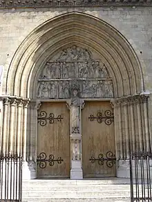 Tympan du portail central de église Saint-Jean-Baptiste de Belleville.