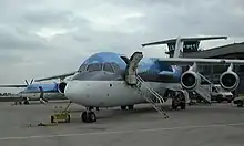 Un BAe 146 et un Fokker F50 de KLM à l'Aéroport de Londres-City en 1999.